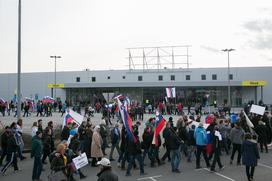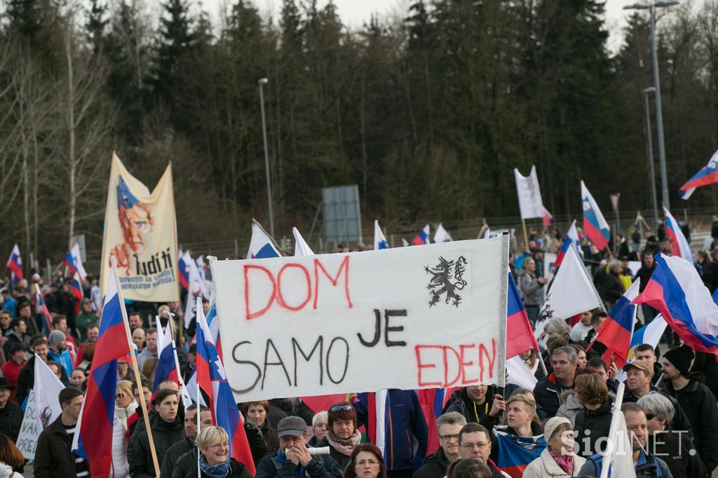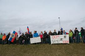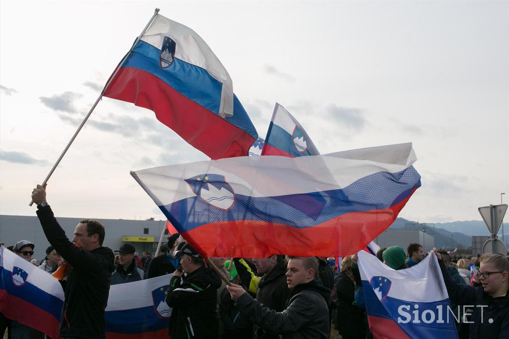 Okoli 3.000 protestnikov je v Šenčurju glasno protestiralo proti centru za migrante (foto in video)