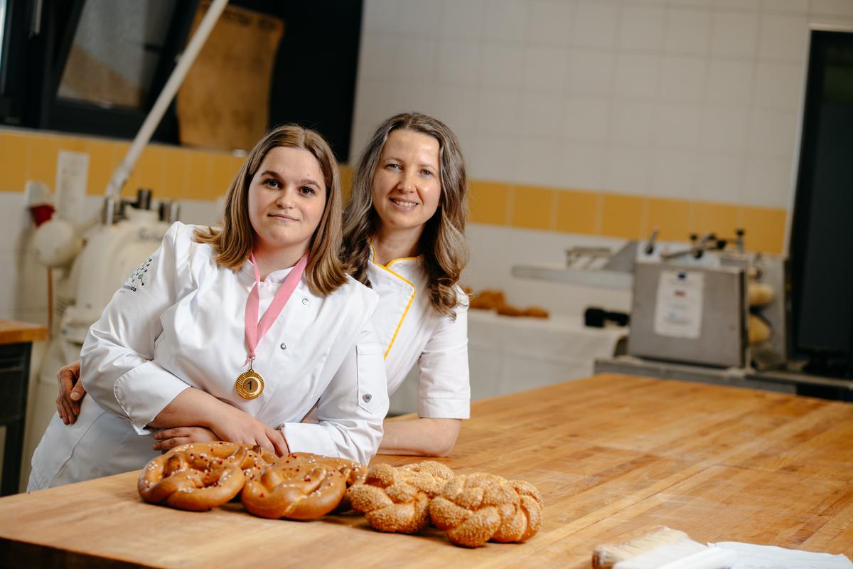 Urška Lesjak, dijakinja petega letnika IC Piramida Maribor in Mateja Gimpelj, inžinir živilstva in prehrane ter učiteljica praktičnega pouka na smeri pek v IC Piramida Maribor