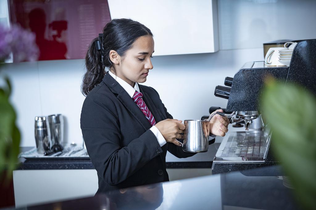 V času šolanja se dijaki učijo vseh ključnih veščin, od osnovnega protokola pri strežbi do zahtevnejših tehnik, kot so flambiranje, mešanje hladnih pijač in umetnost priprave kave.