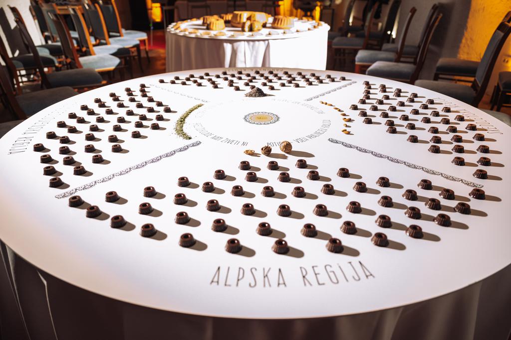 "Sir sem vkomponiral v pralino, dodal še hruškovo marmelado in s tem dobil uravnoteženost okusov. To je pralina, ki jo poskusiš enkrat, ne poješ jih pet na dan. Vedno, ko naredim kakšno zanimivo kombinacijo, opozorim, kaj se skriva notri, da se človek pripravi na to, kar ga čaka," razloži Pogačnik.