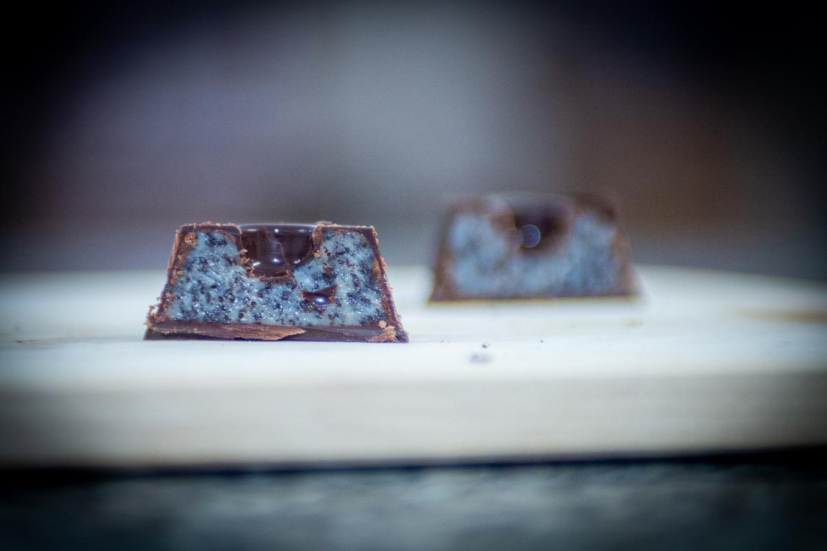 Praline Maksa Pogačnika niso le običajne. Gre za prave male umetnine, v katerih se združita tradicija in sodoben okus. Naš sogovornik se ne boji izzivov in rad ustvarja izven okvirjev. Skoraj nemogoče se zdi združiti zaseko s čokolado, a je naredil prav to; pralino, polnjeno z zaseko in karamelo. Ustvaril je tudi pralino s soriškim sirom, ki ima zelo intenziven okus, podoben mohantu.