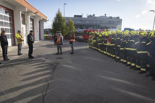 Manj kot pet minut po 13. uri so gasilska vozila odšla na intervencijo. Vodja intervencije je na vhodu v podjetje Helios sprejemal gasilce in usmerjal vozila posameznih gasilskih društev.