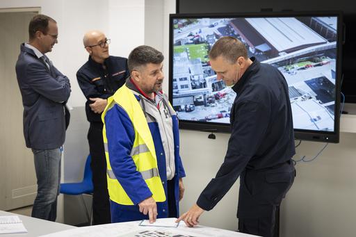 Poveljnik CZR Domžale Matjaž Merkužič je bil v vaji v podjetju Helios vodja intervencije.