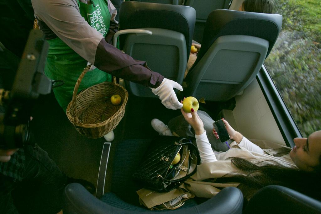 "Ko na vlaku potnik prejme jabolko, ga to spomni, zakaj je vredno posegati po slovenski hrani. Hrana slovenskega porekla je pridelana na do okolja prijazen način, z manj gnojil, antibiotikov in pesticidov, kar dokazujejo vse analize," pojasni Podgoršek.