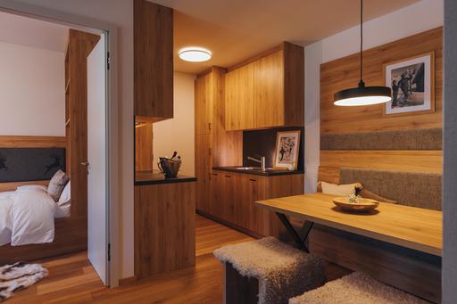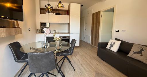 Apartmaji so prijetni, svetli in premišljeno zasnovani, z dovolj prostora, da se vsak član družine počuti sproščeno. Dodano udobje ustvarjajo tudi zasebne shrambe za smuči in kolesa ter sušilci za čevlje, kar pomeni, da je oprema vedno suha, topla in pripravljena na nov dan – tako pozimi kot v vseh ostalih letnih časih, ko Kranjska Gora postane raj za kolesarje in pohodnike.