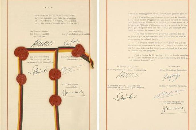 Tedanja Zvezna republika Nemčija in Francija sta pred pol stoletja v Elizejski palači v Parizu podpisali pogodbo, ki je postavila temelje prijateljstva in sprave med državama ter njunega tesnega sodelovanja na področju mednarodnih odnosov, obrambe in izobraževanja. Pot, ki je nekdanji sovražnici spremenila v prijateljici, se je začela julija 1962 s spravno mašo v katedrali v Reimsu, s katero se je končal državniški obisk takratnega nemškega kanclerja Konrada Adenaurja v Franciji. Adenauer in takratni francoski predsednik Charles de Gaulle sta pol leta pozneje, 22. januarja 1963, v Parizu podpisala elizejsko pogodbo. Sprava med Francijo in Nemčijo je, tako pravijo poznavalci, pomembno vplivala tudi na poznejše združevanje stare celine. Številni menijo, da Evropske unije, kot jo poznano danes, brez nje ne bi bilo.