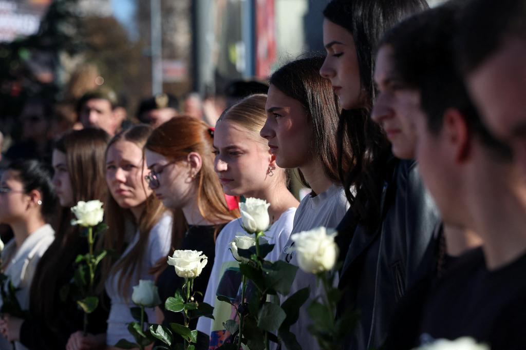 Množica ljudi se je malo pred opoldnevom zbrala na osrednjem mestnem trgu. Nosili so črni venec z imeni umrlih, ki so jih pred začetkom molka tudi prebrali, poročajo tuje tiskovne agencije.