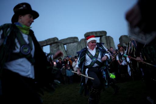 Na območju slovitega arheološkega najdišča Stonehenge v Angliji se je danes zjutraj zbralo več tisoč ljudi, da bi spremljali sončni vzhod na zimski solsticij oziroma najkrajši dan v letu. Na posnetkih je videti, kako ljudje plešejo, pojejo in igrajo na glasbila okoli svetovno znanih kamnitih blokov.
