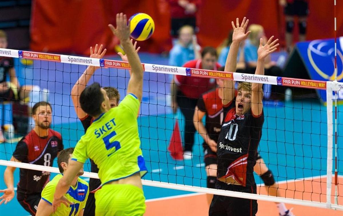 Z odlično igro so slovenski odbojkarji nadaljevali tudi v tretjem nizu, v katerem so z asom Pavloviča povedli s 3:0, nato pa po točki Klobučarja že z 9:3. Danci so se pred drugim tehničnim odmorom slovenski ekipi še uspeli približati na tri točke zaostanka (8:11), toda s petimi zaporednimi točkami, v glavni vlogi je bil Klobučar, so slovenski odbojkarji dokončno zlomili njihov odpor. V končnici niza je Slabe na igrišče poslal še Daneta Mijatoviča in Matijo Jereba, ki sta se vključila v dobro igro soigralcev ter s svojimi uspešnimi akcijami prav tako prispevala k še eni zanesljivi zmagi. Prvo od trinajstih zaključnih žog je zaključil kapetan ekipe Alen Šket. S to zmago si je Slovenija že priborila trenutno prvo mesto v skupini B.