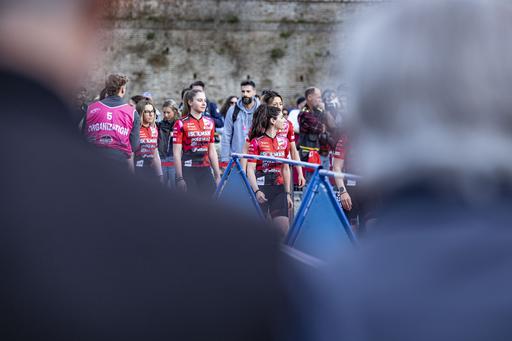 13.36 Prednost ubežne deveterice v moški konkurenci se je na dolgem makadamskem odcepu stopila na zgolj 50 sekund. V ženski konkurenci so bile na vzponu na Le Tolfe najmočnejše Longo Borghini, Pieterse in Niewiadoma.