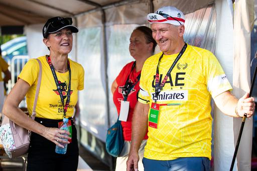 Tadej Pogačar se je med najzvestejše navijače seveda pripeljal v rumeni majici.
