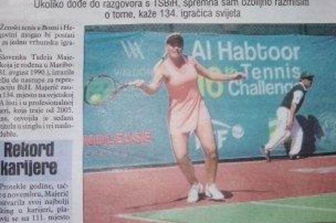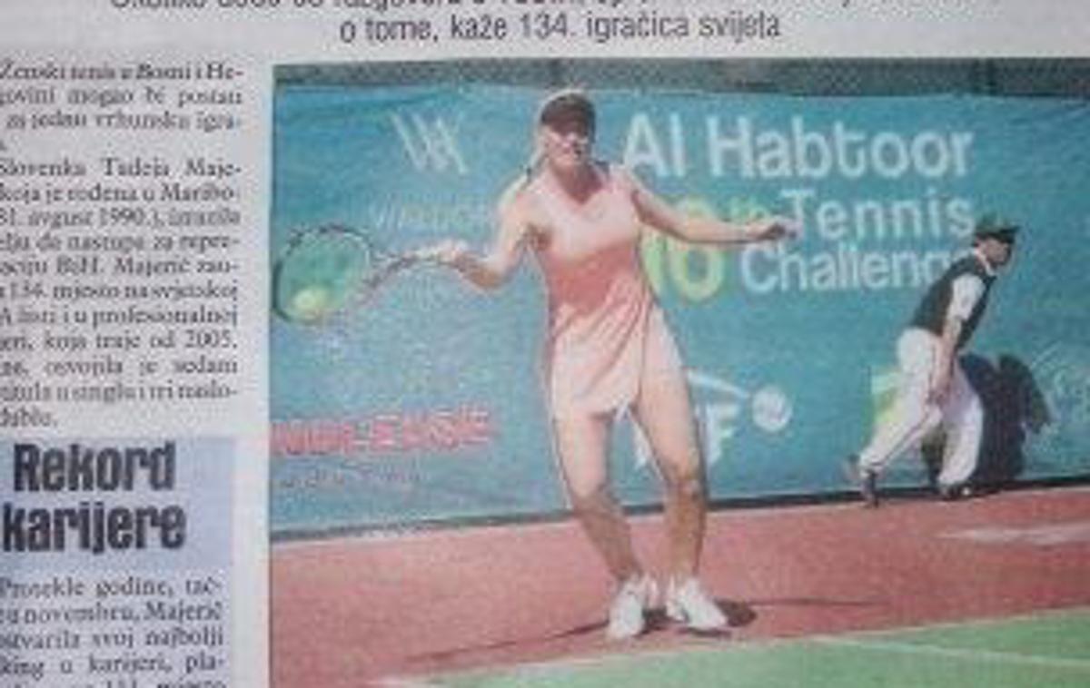 Triindvajsetletna Štajerka Tadeja Majerič velja v zadnjih letih za drugo slovensko žensko violino. Na jakostni lestvici WTA zaostaja le za najvišje uvrščeno Polono Hercog, ki pa zaradi poškodb doživlja številne neprijetnosti, tako da mora kot po tekočem traku izpuščati nastope na največjih in najbolj mikavnih turnirjih. Slovensko čast je na nekaterih letošnjih WTA turnirjih reševala prav Majeričeva, ki pa bi lahko kmalu zamenjala državni dres in se priključila postavi Bosne in Hercegovine.