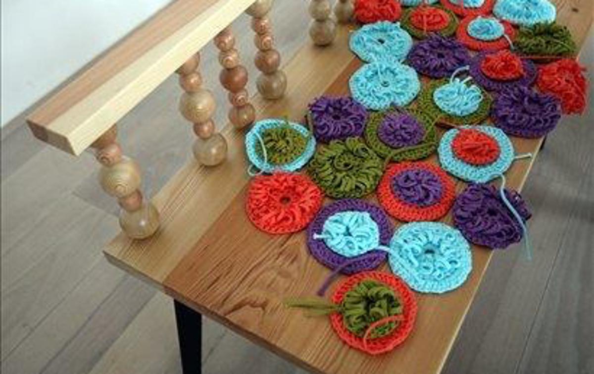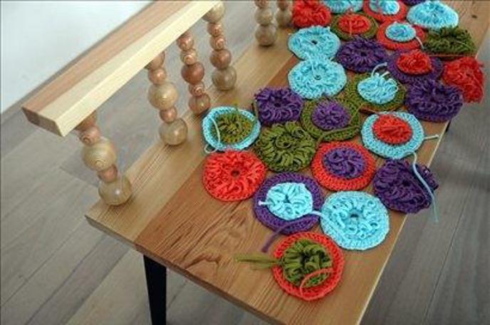 Ročno kvačkano cvetje les poživi ter namiguje na tradicijo rokodelstva pri nas. Motiv cvetja je v slovenski kuhinji prisoten že stoletja na vezenih prtih, stenskih vezeninah, prtičkih.