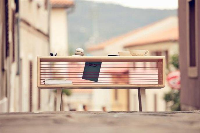 Na leseno mizico, izdelano v koprski delavnici Tok Tok, lahko odložite vse od skodelic do knjig. Zaradi zanimivega oblikovanja je ta kos pohištva priročen in hkrati lep dekorativni element vaše dnevne sobe. Posebnost mizice so ob strani napeljane elastike, za katere lahko zataknete časopise, razglednice ali kaj podobnega. Z različnimi barvami elastičnih vrvic se spreminja tudi podoba mizice.