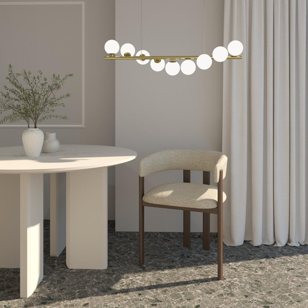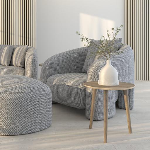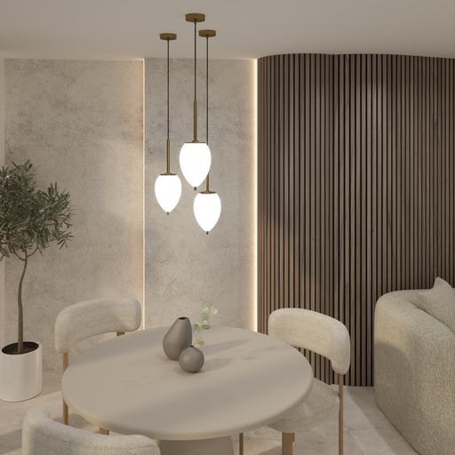 Izdelki: stol korra Ayla Round, stol korra Lolly, viseča svetilka Zorra Lighting Recens, stenski panel Voxort WPC Viola.