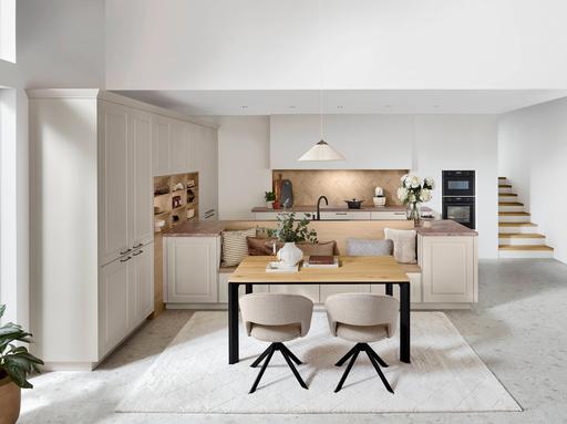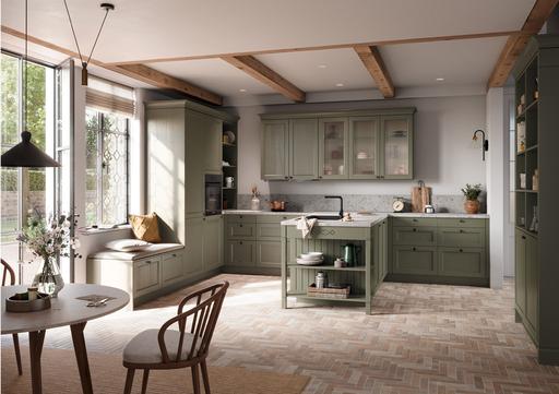 - kuhinje v slogu shaker z različnimi debelinami okvirjev na ličnici