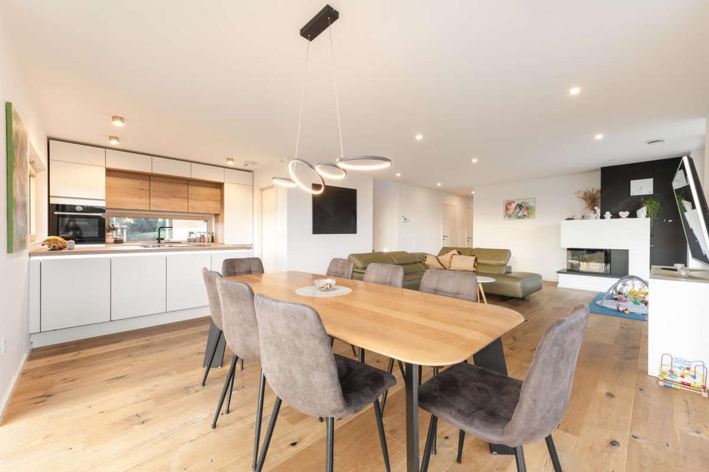 - Brezčasen dizajn in minimalistična eleganca – sodobna arhitektura z jasnimi linijami in umirjeno barvno paleto ustvarja eleganten, a topel dom, ki se popolno zlije z naravnim okoljem.