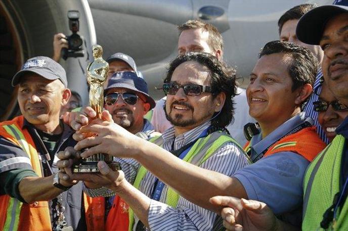 Kipce je na poti spremljal predsednik ameriške filmske akademije Tom Sherak, ki je letališkim delavcem in potnikom na letalu dovolil, da se fotografirajo z najprestižnejšimi filmskimi nagradami, za spomin na ta let pa so dobili tudi majhne čokoladne replike kipcev.