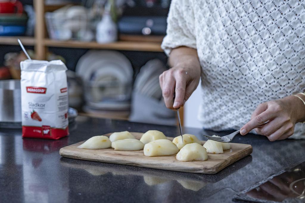 Namig: Hruškini olupki med kuhanjem sprostijo naravno aromo in nežno sladkobo, zato jih vedno dodamo v lonec. Kompot bo tako še bolj okusen in bolj polnega okusa.