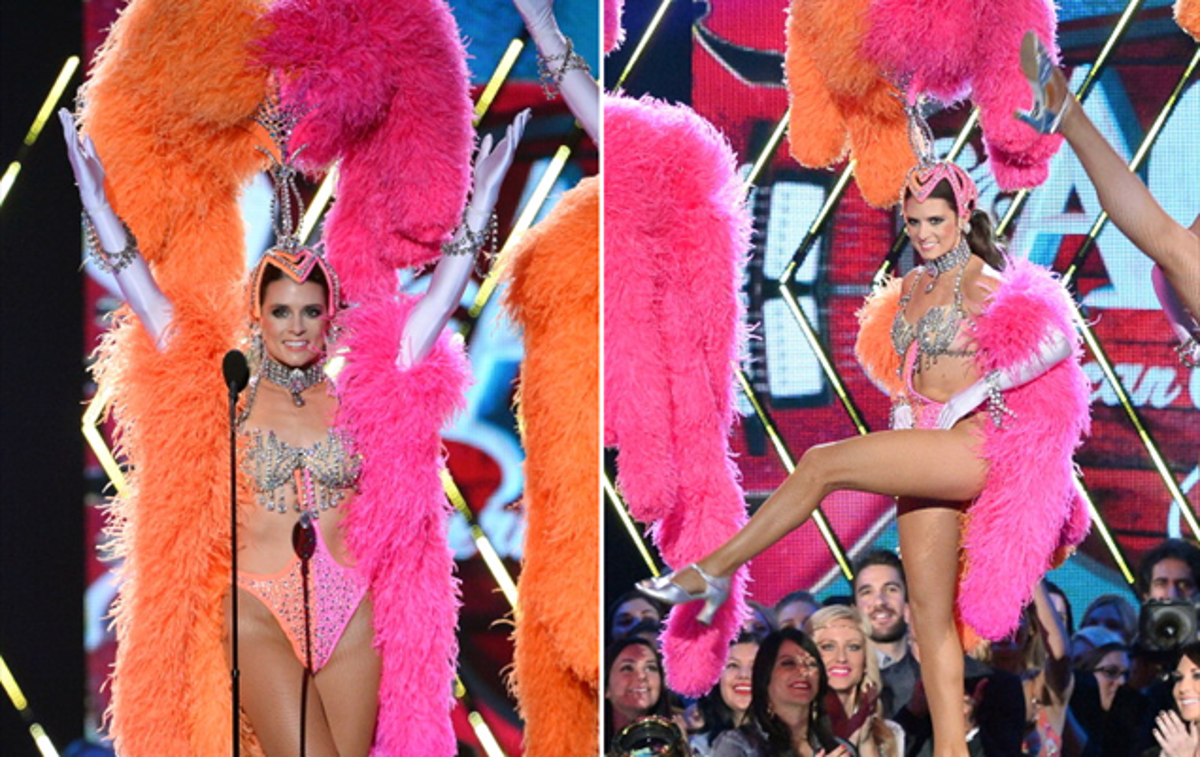 Športnica, ki slovi tudi po svojem privlačnem videzu, je med Američani izjemno priljubljena, tokrat pa se je preizkusila tudi v vlogi sovoditeljice podelitve ameriških country nagrad, ki je bila v Las Vegasu. Enaintridesetletna Danica se je za enega od izhodov preoblekla prav v značilen kostum plesalk iz mesta zabave in dokazala, da ji drznosti ne manjka – tudi ko ni za volanom.