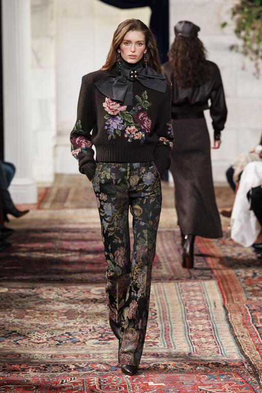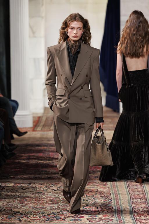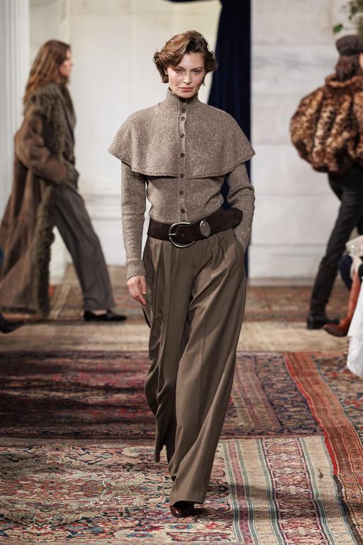 Ralph Lauren je na letošnjem tednu mode v New Yorku jasno predstavil nove modne smernice, ki temeljijo na zemeljskih barvah, naravnih materialih in dovršenih kombinacijah. Noben stajling ni bil sestavljen le iz enega ali dveh kosov, temveč je vsak videz deloval celostno, premišljeno in bogato. Videli smo veliko žametnih materialov, usnja, ovčje preje ter igranja s pasovi, ki so poudarjali silhueto in dodajali strukturo. Kolekcija je delovala izjemno glamurozno, a hkrati nosljivo in uporabno.