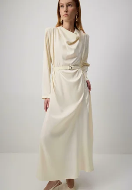 Saten je klasična izbira za novoletne večere, saj obleki daje sijaj in občutek luksuza brez preveč bleščanja. Satenaste obleke v pastelnih, nevtralnih ali globokih tonih so zares vsestranske. Lahko jih kombinirate z diskretnimi sandali ali minimalističnimi salonarji, da ohranite prefinjenost in ženstvenost.