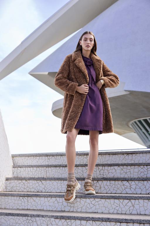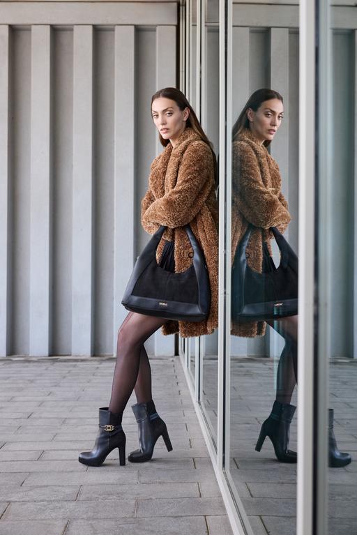 To sezono prevladujejo modni kosi, ki združujejo udobje in izrazit slog. Škornji pod koleni se vračajo v različnih izvedbah, z ravnim podplatom, peto ali v gladkem usnju in delujejo kot vsestranski kos, ki podaljša silhueto in se odlično kombinira z zimskimi krili ali plašči. Popolno se ujemajo z umetnim krznom, ki vsakemu outfitu doda pridih razkošja, naj bo to v obliki plašča, ovratnika ali dodatka.