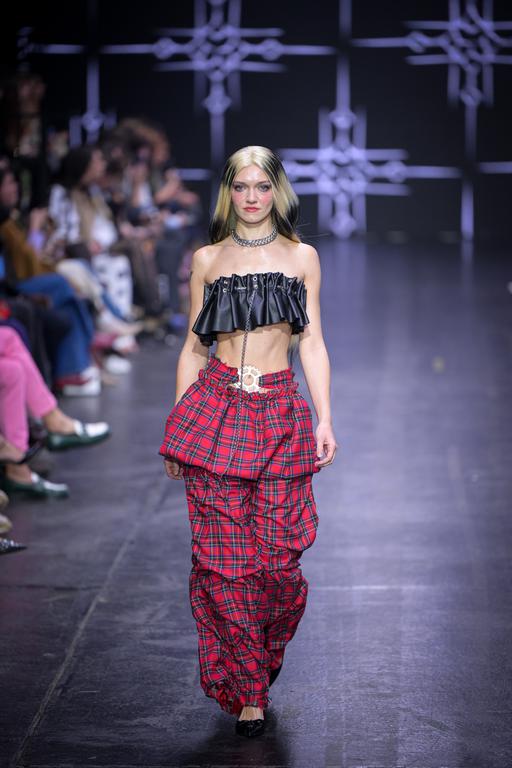 Modni večer je zaznamovala kreacija, o kateri se je po koncu revije še dolgo govorilo. Ko je manekenka v elegantni, a hkrati drzni obleki oblikovalca Matica Velarja stopila izza vogala, je v trenutku pritegnila pozornost celotne dvorane. S prefinjenim prepletom klasičnih linij in sodobnih materialov je Veler znova dokazal, da zna ustvariti kos, ki preseže modno estetiko in postane trenutek umetnosti sam zase.