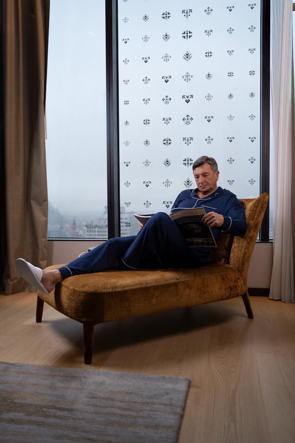Med vsemi modeli pižam je Boruta Pahorja najbolj prepričala Svilanit dolga moška pižama Borut – Imperial Blue, izdelana iz izjemno mehke mešanice bombaža in bambusove viskoze. Tkanina je na otip svilnato prijetna, naravno zračna in ravno prav lahkotna, da se telesu popolno prilagodi. Bambusova vlakna uravnavajo toploto, dihajo s kožo in ustvarjajo idealno ravnovesje med toplino in svežino, kar zagotavlja miren, sproščujoč spanec.