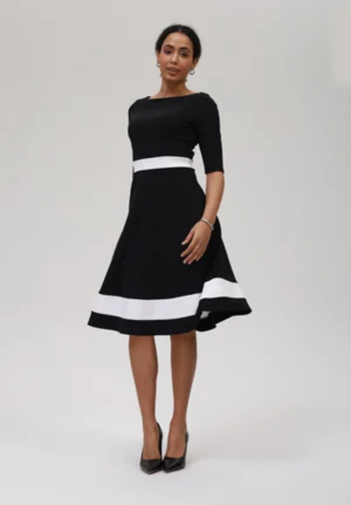 Kontrast črne in bele nikoli ne razočara. Takšne obleke delujejo elegantno, sofisticirano in nekoliko bolj luksuzno. Geometrijski vzorci, subtilni kontrastni detajli ali preprosta razdelitev barv ustvarjajo močan vizualni učinek brez pretiravanja. Ta kombinacija je idealna za vse, ki prisegate na klasiko, a si vseeno želite opaznega videza.