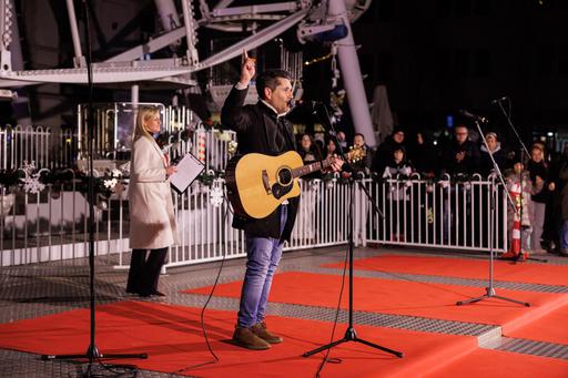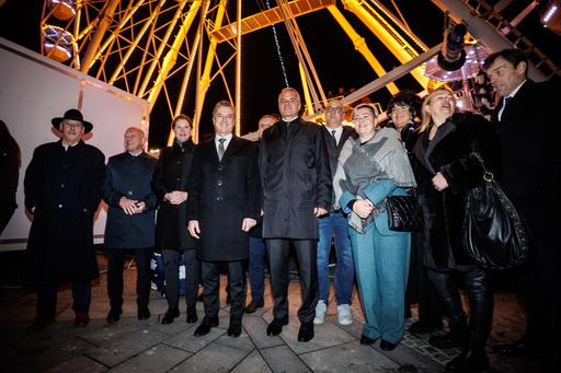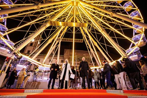 Prvi je v soju prazničnih luči letos zasijal Maribor. Lučke na 33-metrskem panoramskem kolesu na Glavnem trgu je skupaj z mariborskim županom Sašo Arsenovičem točno ob 17. uri prižgal premier Robert Golob.