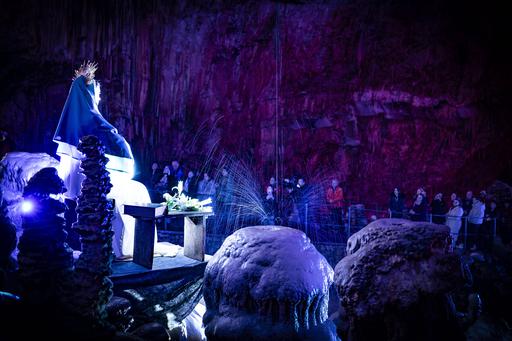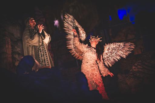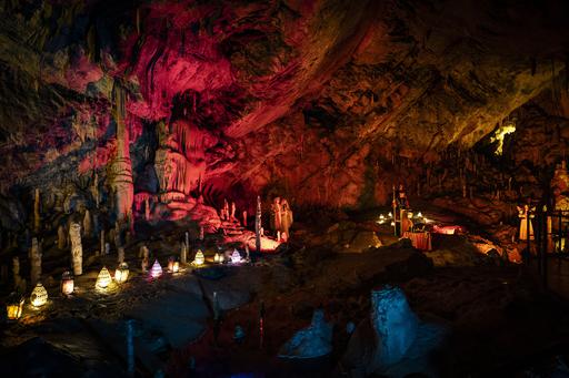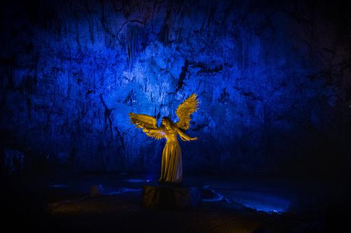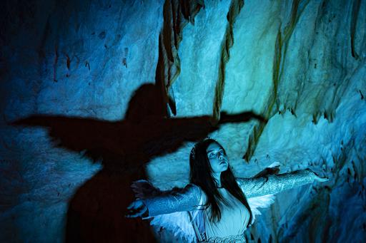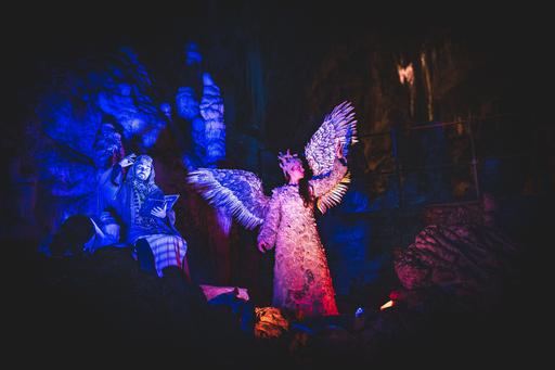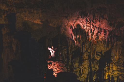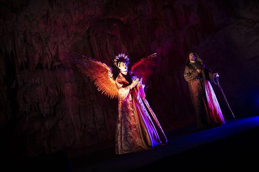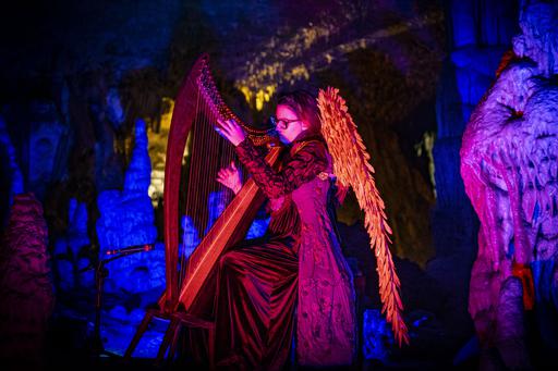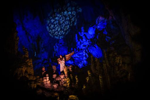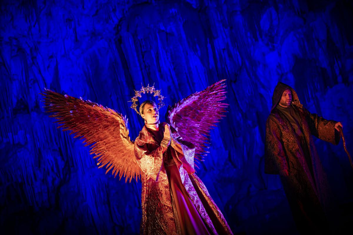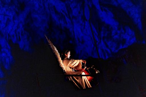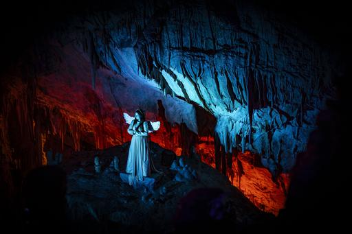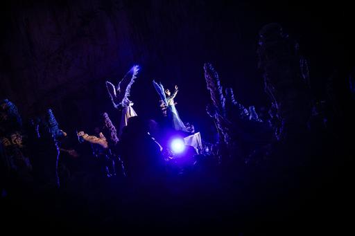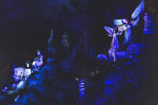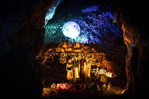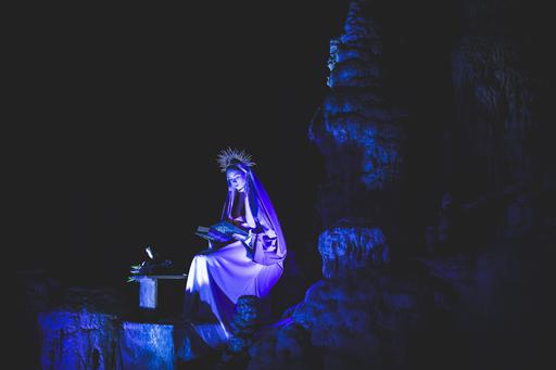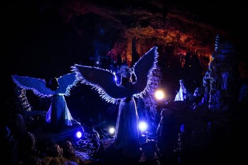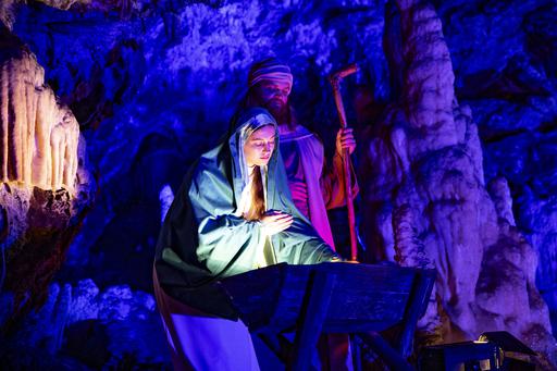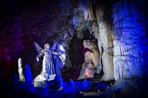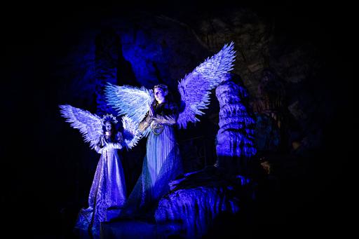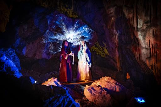 Ob spremljavi vrhunskih glasbenikov in pevcev se v jami odvijejo svetopisemski prizori oviti v čarobno svetlobno kuliso.