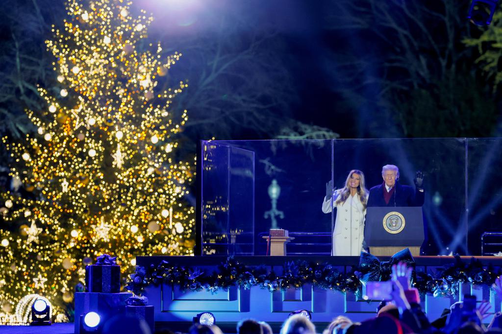 Predsednik Donald Trump je izjavil, da je drevo prava lepotica, v nagovoru zbranim pa je med drugim potarnal nad tem, da so mu demokrati leta 2020 ukradli volitve, se pohvalil s podpisom mirovnega sporazuma med DR Kongom in Ruando, kjer se boji nadaljujejo, ter spomnil Američane, da bodo prihodnje leto gostili svetovno prvenstvo v nogometu.